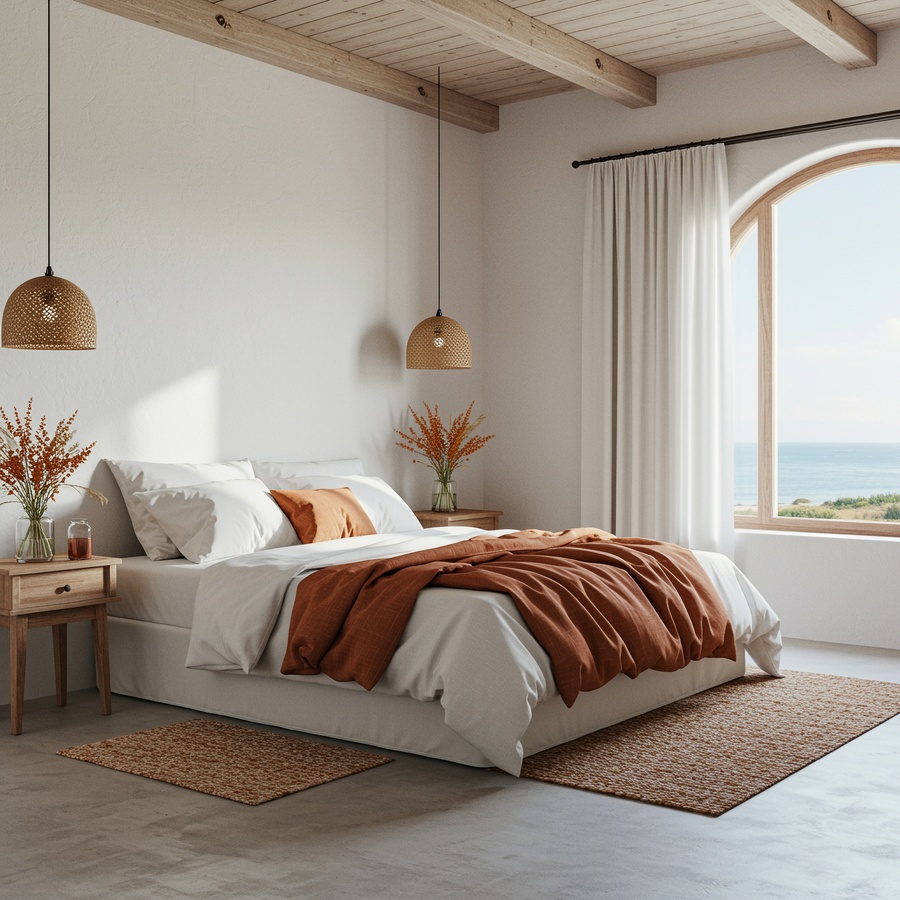A hálószobában az egyszerű burkolat és a fehér falfestés dominál. Ezt a semleges alapot kiegészítők és dizájnelemek könnyedén feldobhatják. A szőnyegek, virágok, gyertyák, mécsestartók, ágyneműszettek és lámpabúrák mind hozzájárulnak ahhoz, hogy évszaktól függően megváltoztathassuk a helyiség hangulatát. Az átgondolt részletek segítségével ez a tér valóban a pihenés és kikapcsolódás színhelyévé válik.