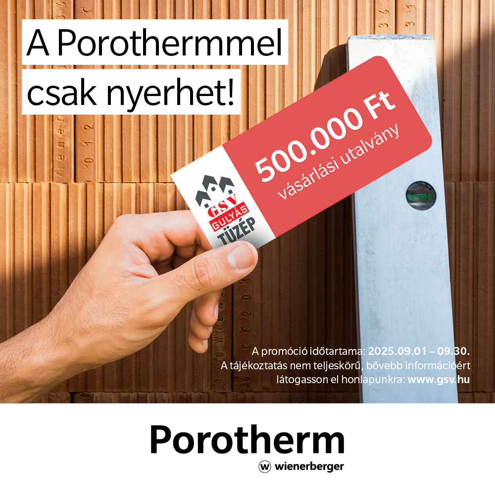 - A Játékban részt vehet az a személy, aki a Szervezőtől 09.01. és 2025.09.30. napja között legalább bruttó 500.000,- Ft összegű vételár (a továbbiakban: Termékvételár) ellenében vásárol a Wienerberger által gyártott Porotherm termék(ek)et (a továbbiakban: Termék).